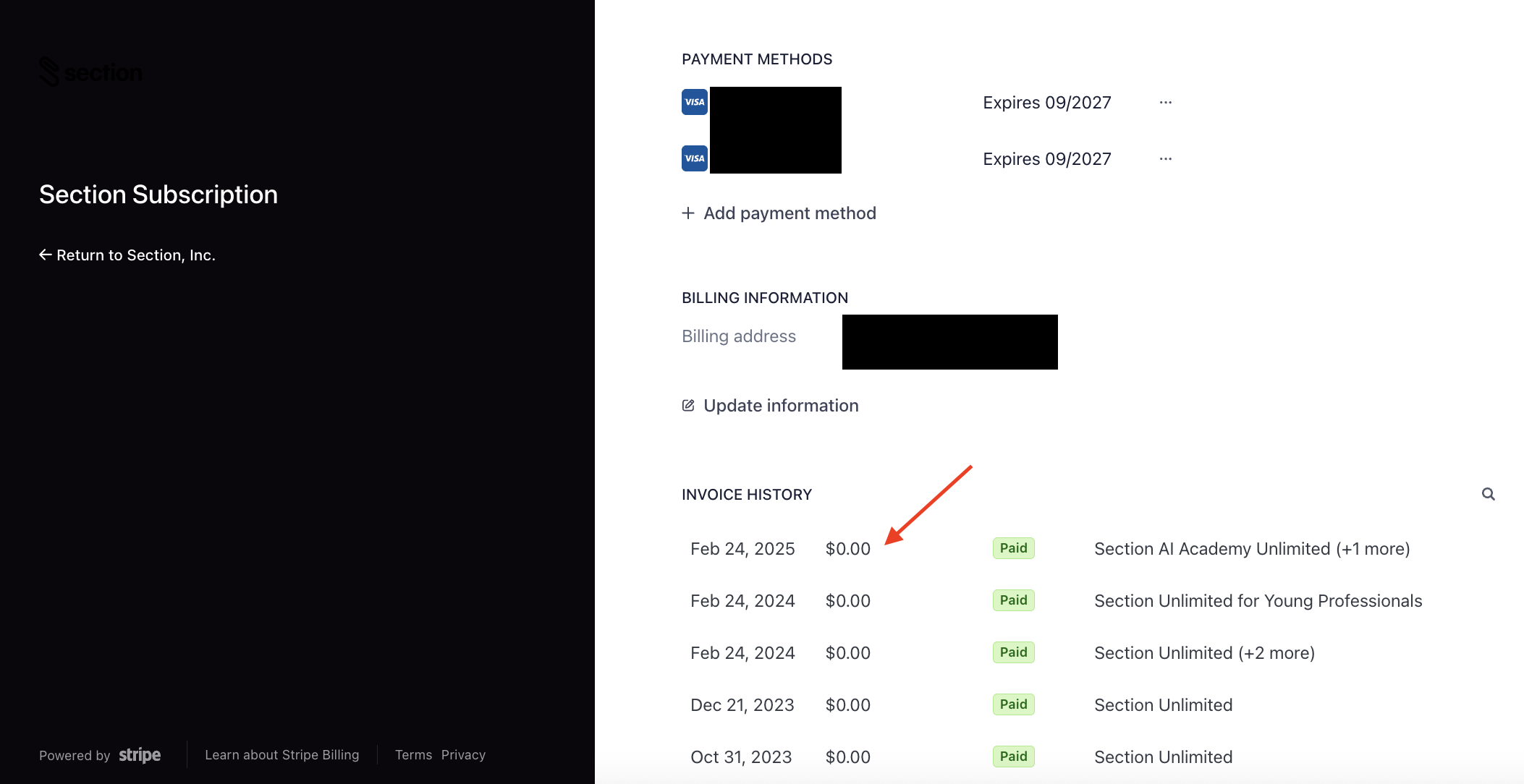 You can get a downloadable copy of your receipt or invoice in your Section account.