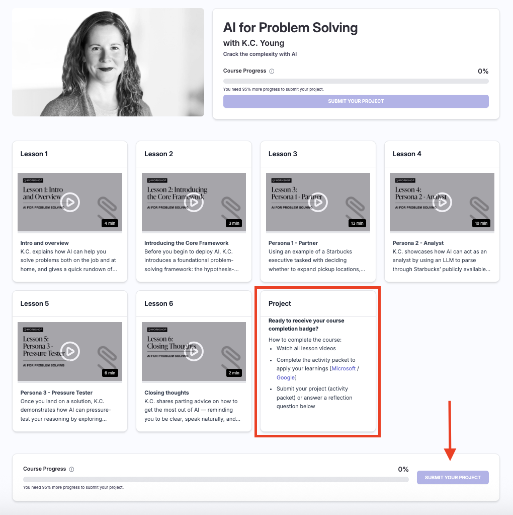 Yes! If you are completing an on demand course or cohort program, you can find the "Submit Your Project" button at the very bottom of the course page.